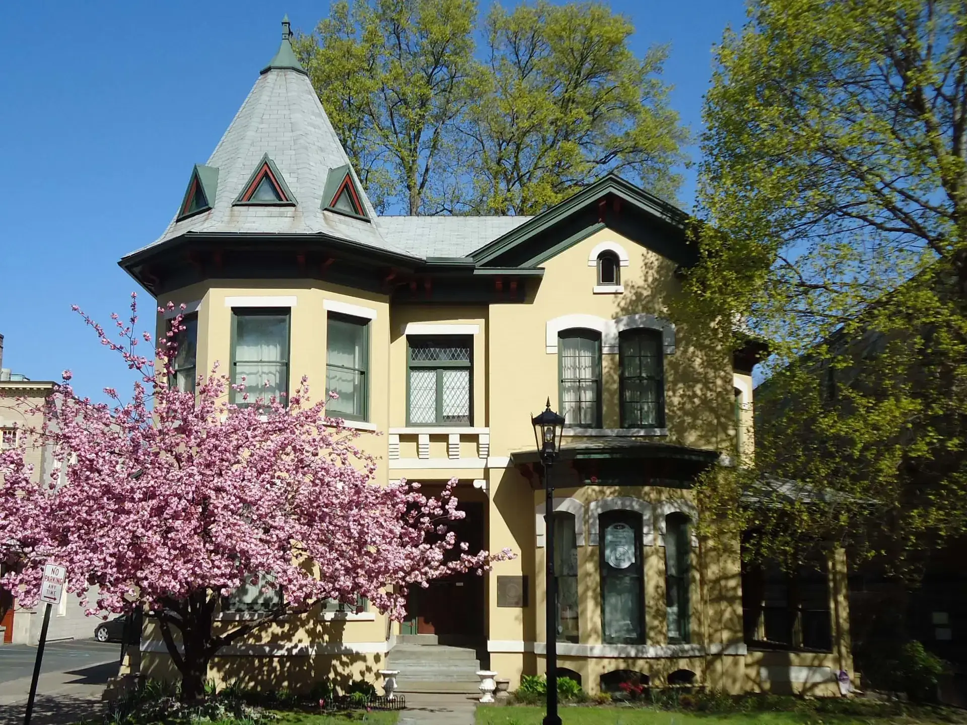 In 1971, the Society purchased what was to become the Bishop Memorial Library, through the bequest of Elma C. and Bessie Bishop. The building, designed by architect Willis O. Hale and constructed in 1876, was the former residence of Mrs. Volney Maxwell, and currently houses the Society’s library and archives collections.