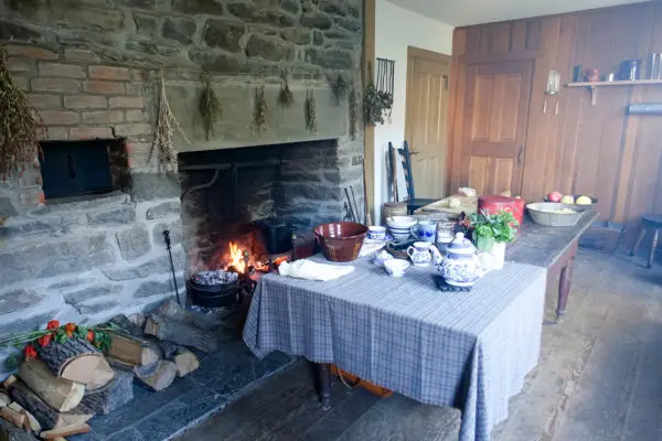 In 1790, Nathan Denison built this house on the western bank of Abrams Creek in what was then Kingston Township (now Forty Fort). He lived in this house until his death in 1809. While typical of the homes in Connecticut, it was built in a style unusual to Pennsylvania. Visitors will see that the rooms in this type of New England house are arranged around a large central chimney. The stone wall located in front of the Denison House also gives a Connecticut appearance to the house. In Nathan Denison’s time, the wall would have been located along the original property lines instead of so close to the home.