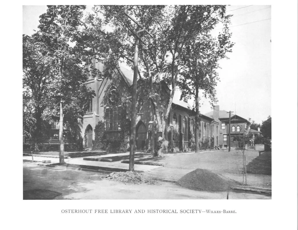 Late 1800s historical photograph reproduction from Wilkes-Barre Illustrated, 1891. Black and white image with descriptive text, matte finish heavy paper; sheet is 9.5″ x 12.5″, image alone is 7″ x 9″.
