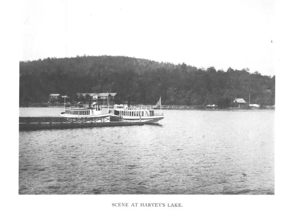 A view of a gazebo at the edge of Harvey’s Lake.